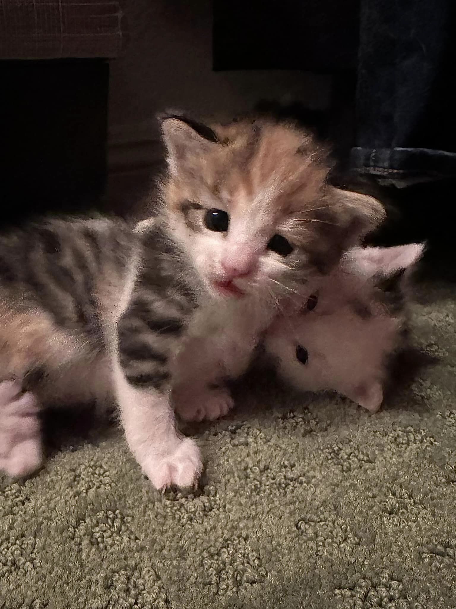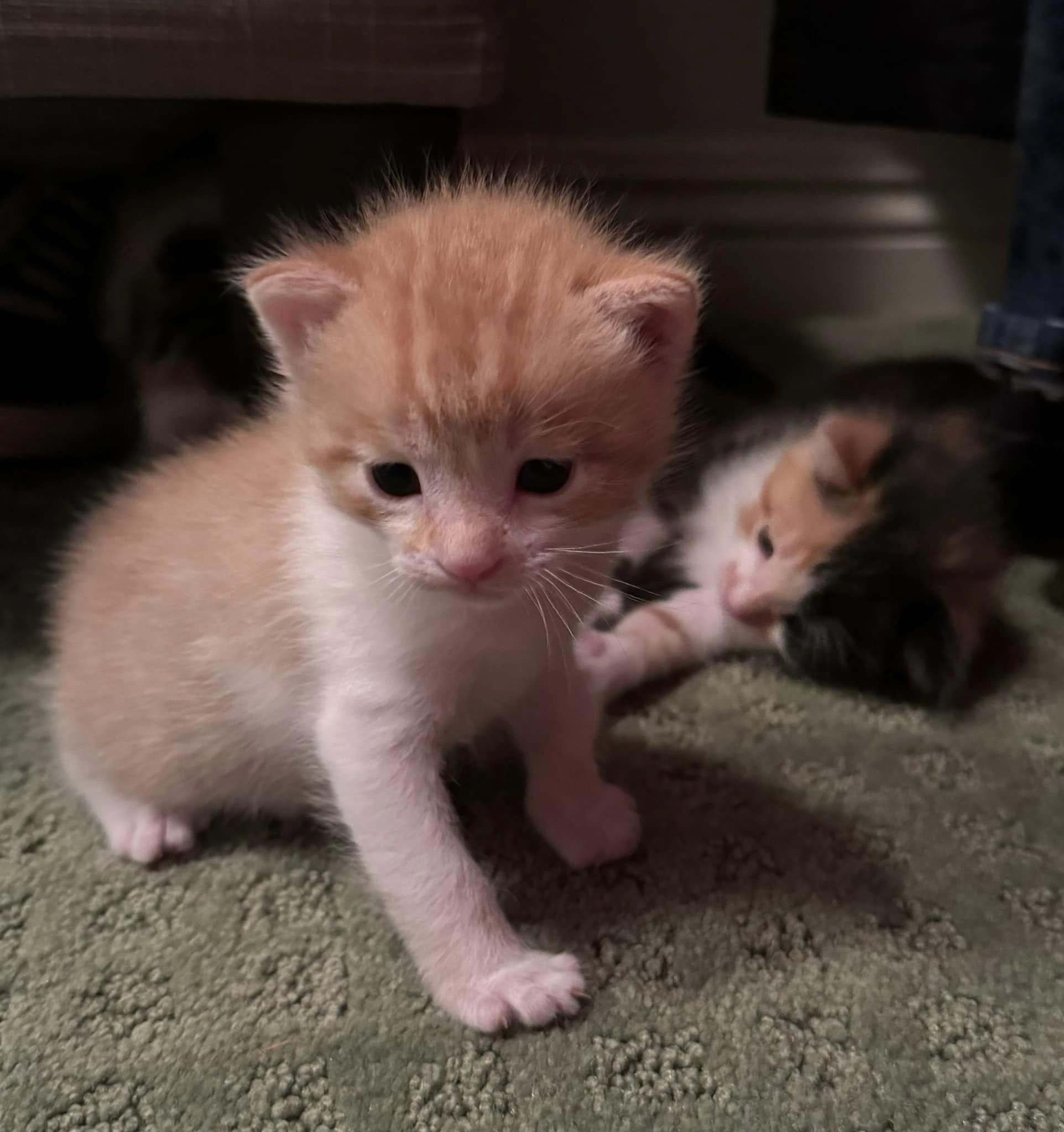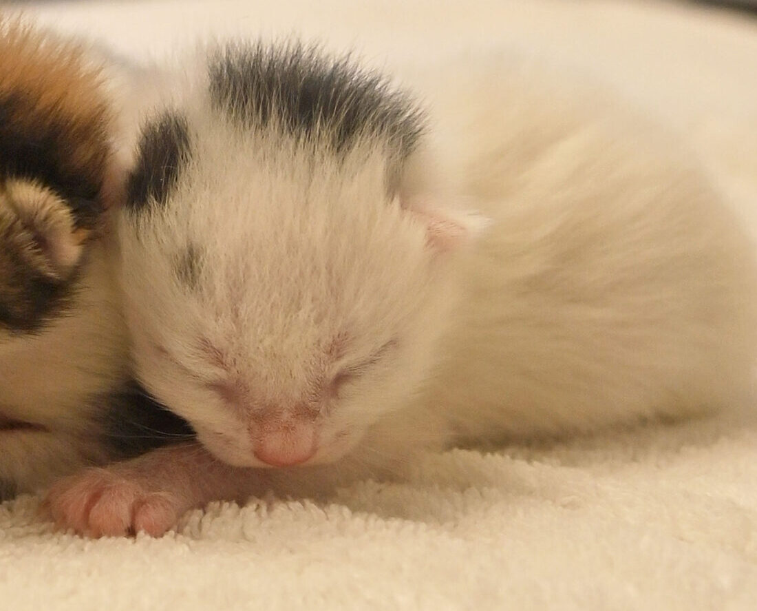 These adorable little ones couldn’t be any more charming! They’re having a blast in their foster home, loving their cozy bed and snuggling up with each other for naptime. At 5 weeks old, they’re growing and discovering more about the world with each passing week.