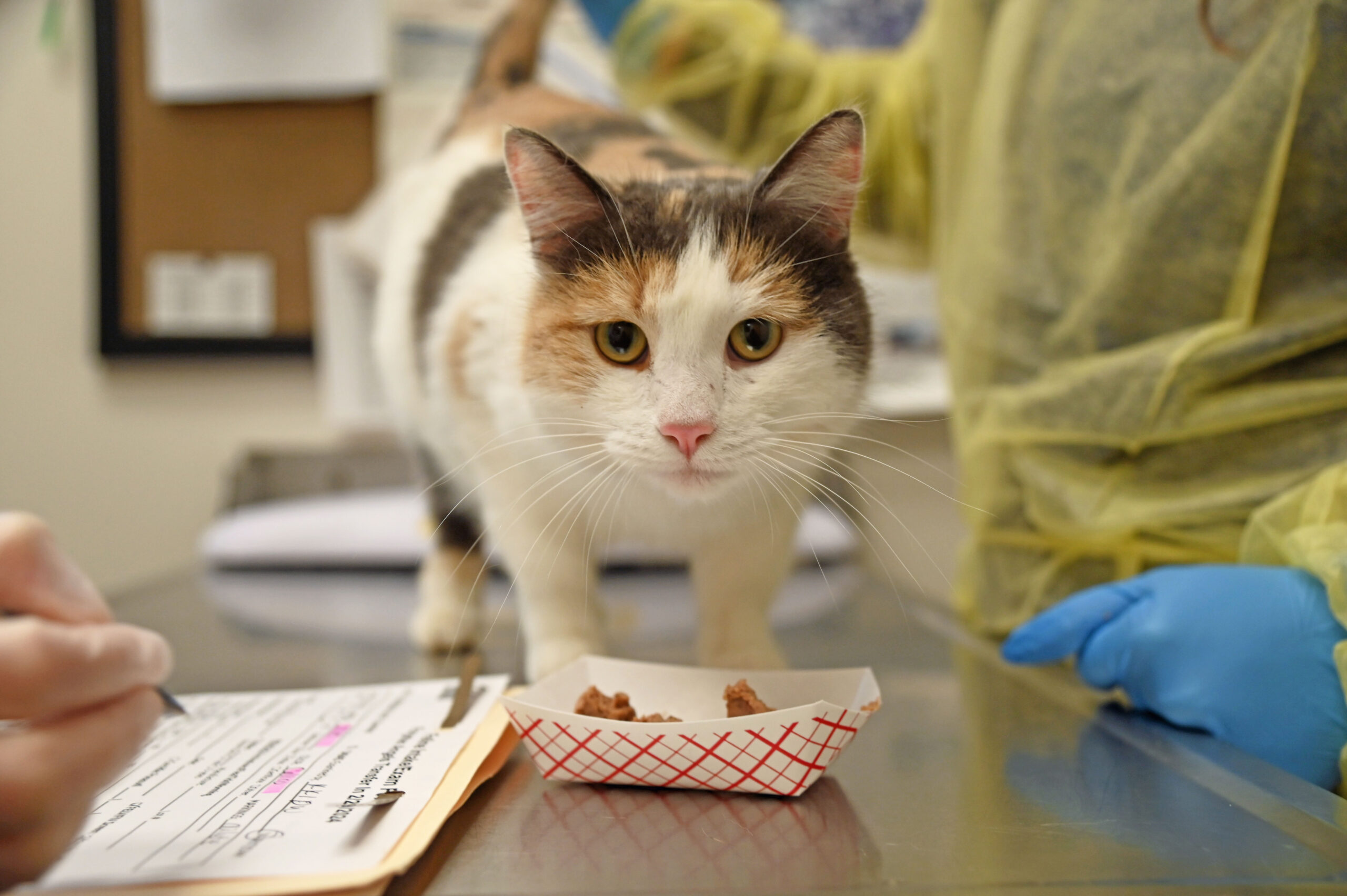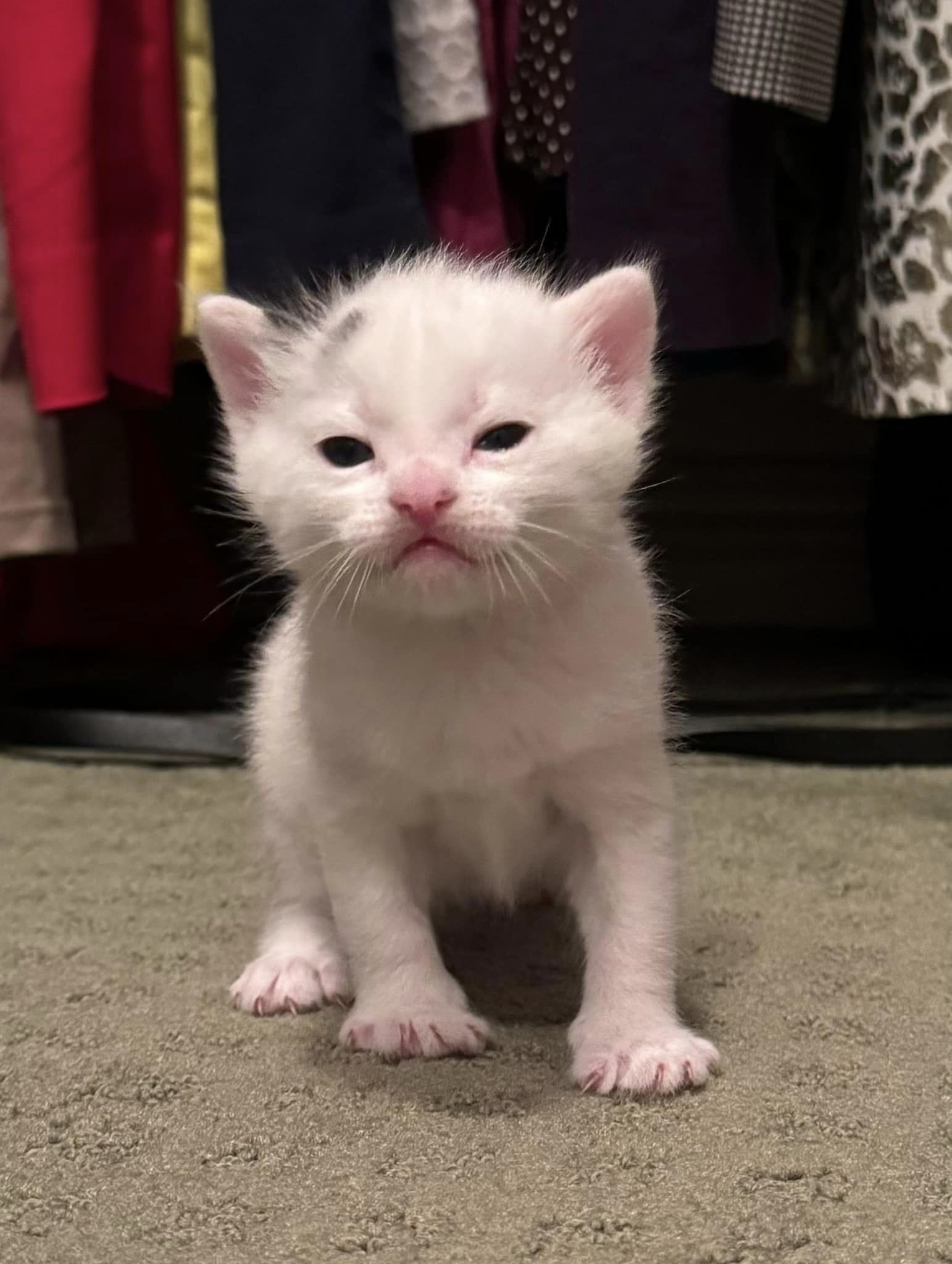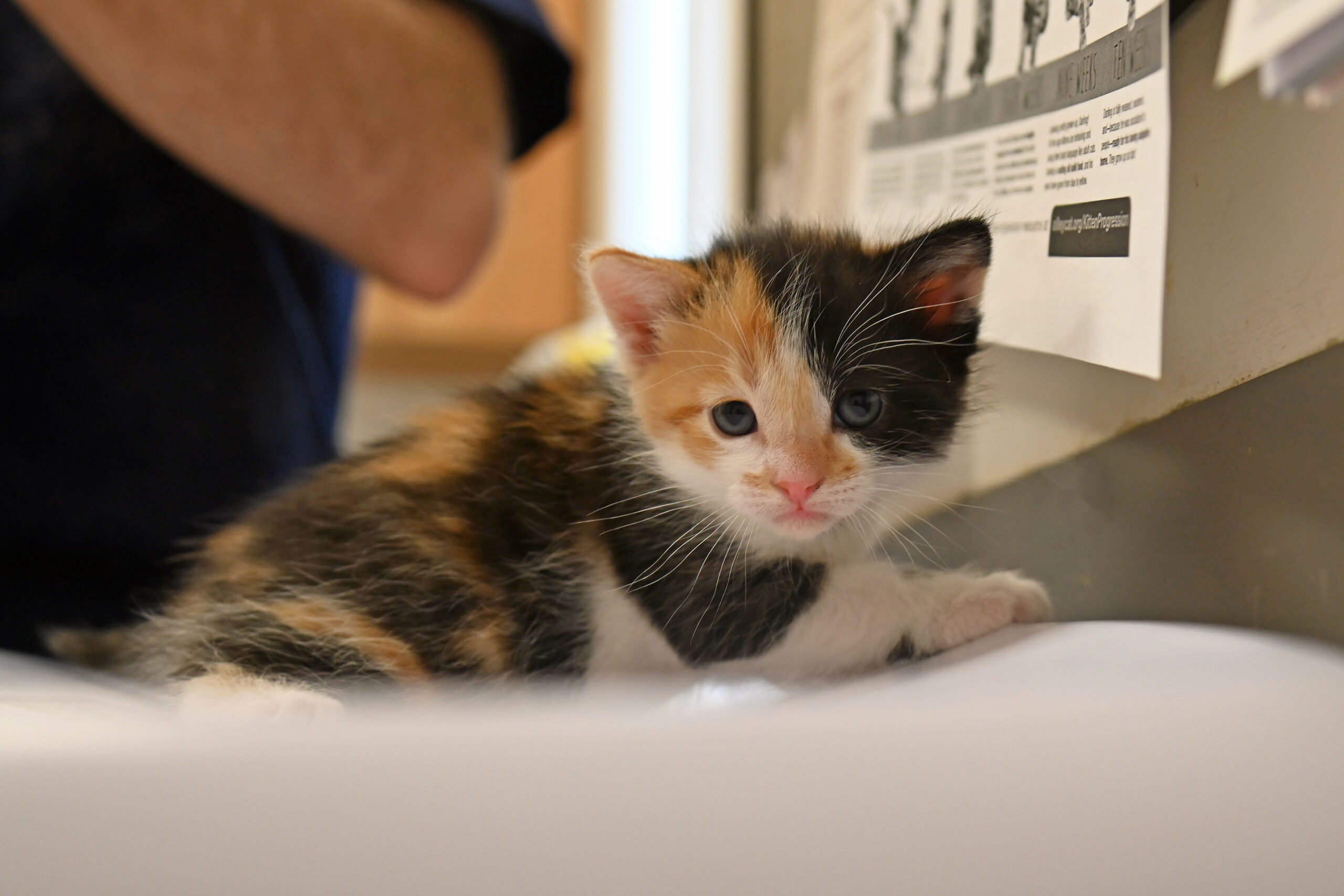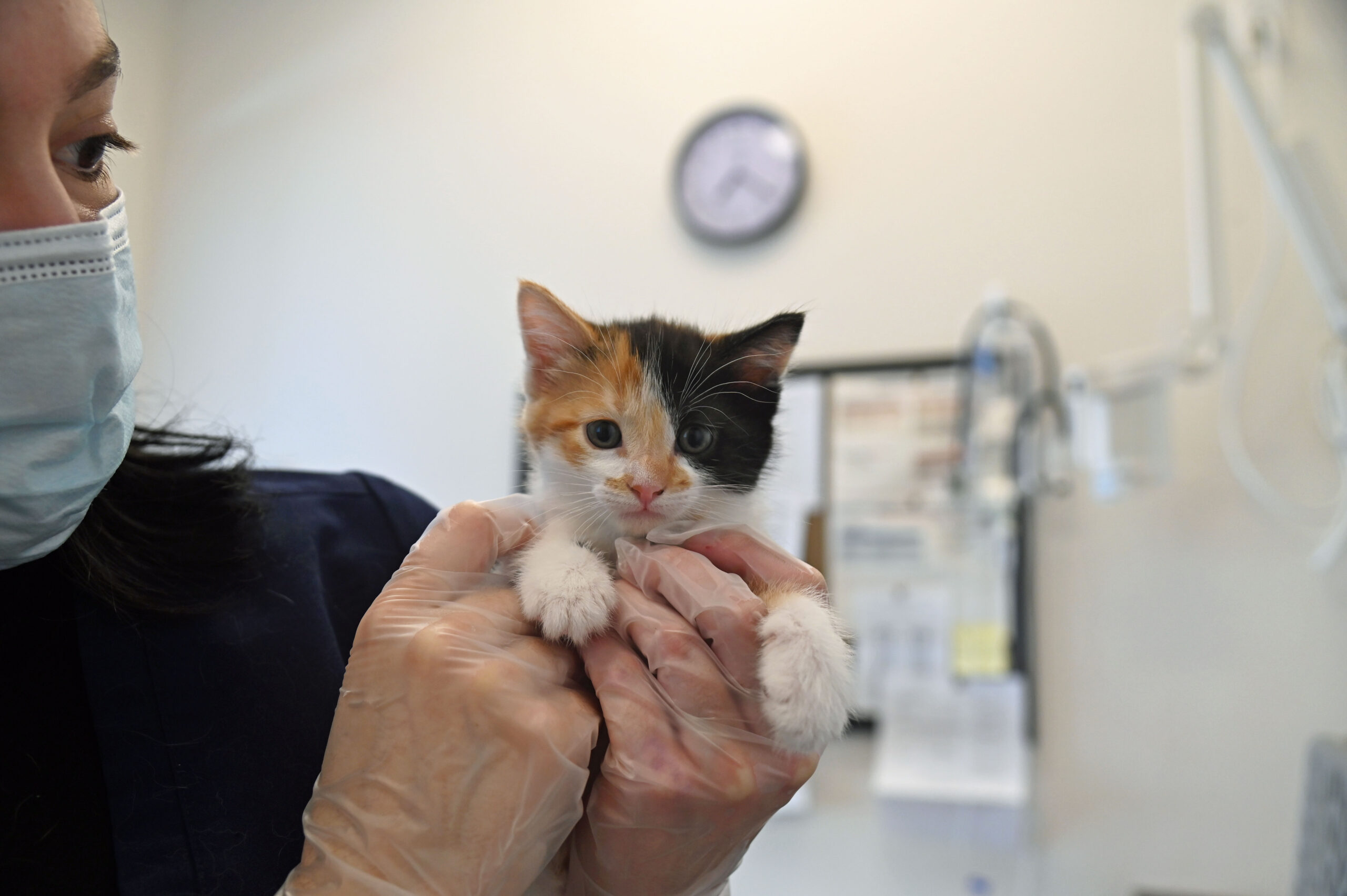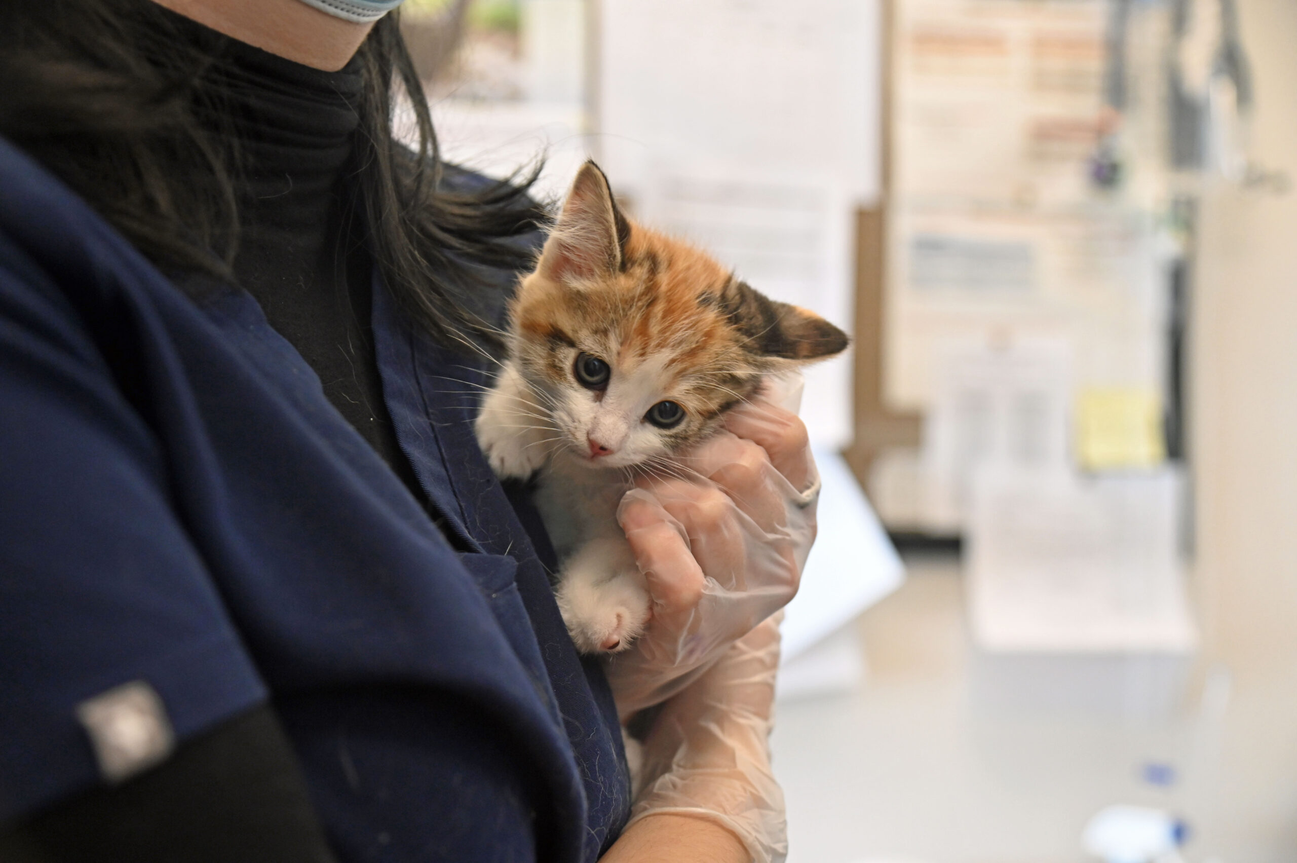 On March 28, 2024, Sunkist and the kittens arrived to receive their first vaccines and get another check-up to make sure they are all doing well! At 4 weeks old, they have fully opened their eyes and starting to discover their surroundings and personalities.