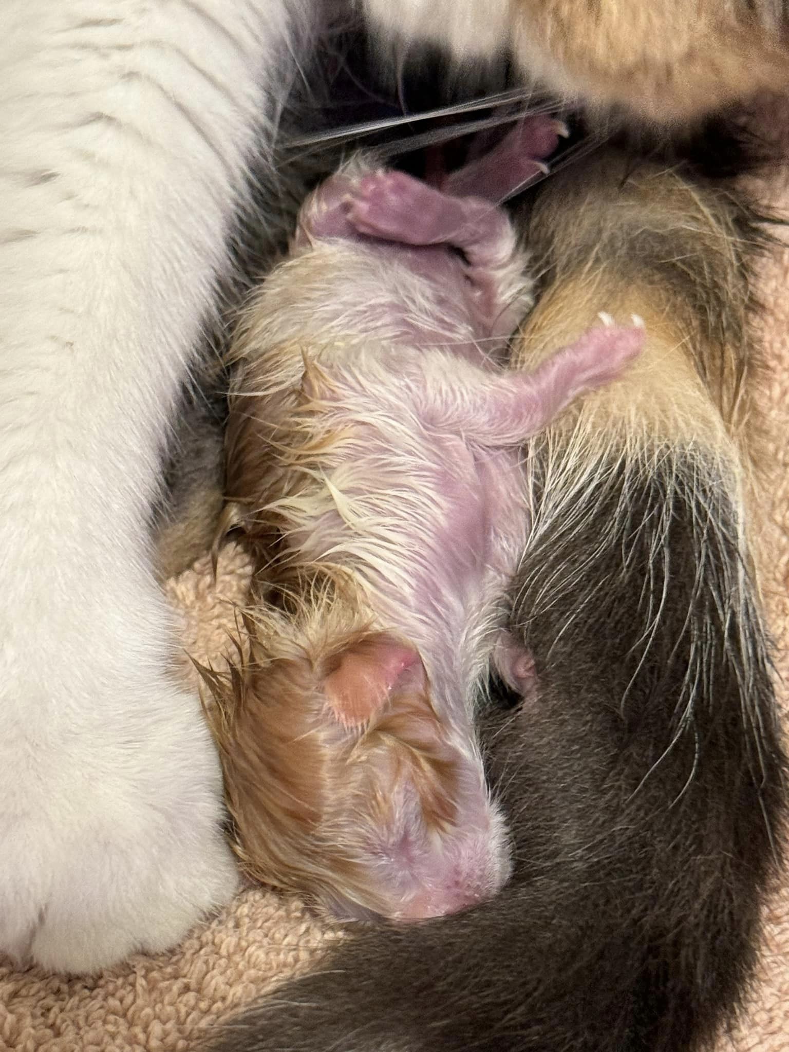 Sunkist arrived at the Center on February 29, 2024 from the Los Angeles area. She was full of love knowing she was going to be taken well care of. The medical team was expecting her to be due any day, but the moment mama Sunkist left to her foster home she gave birth to 4 healthy babies! We are so excited to announce we have LEAP DAY babies!