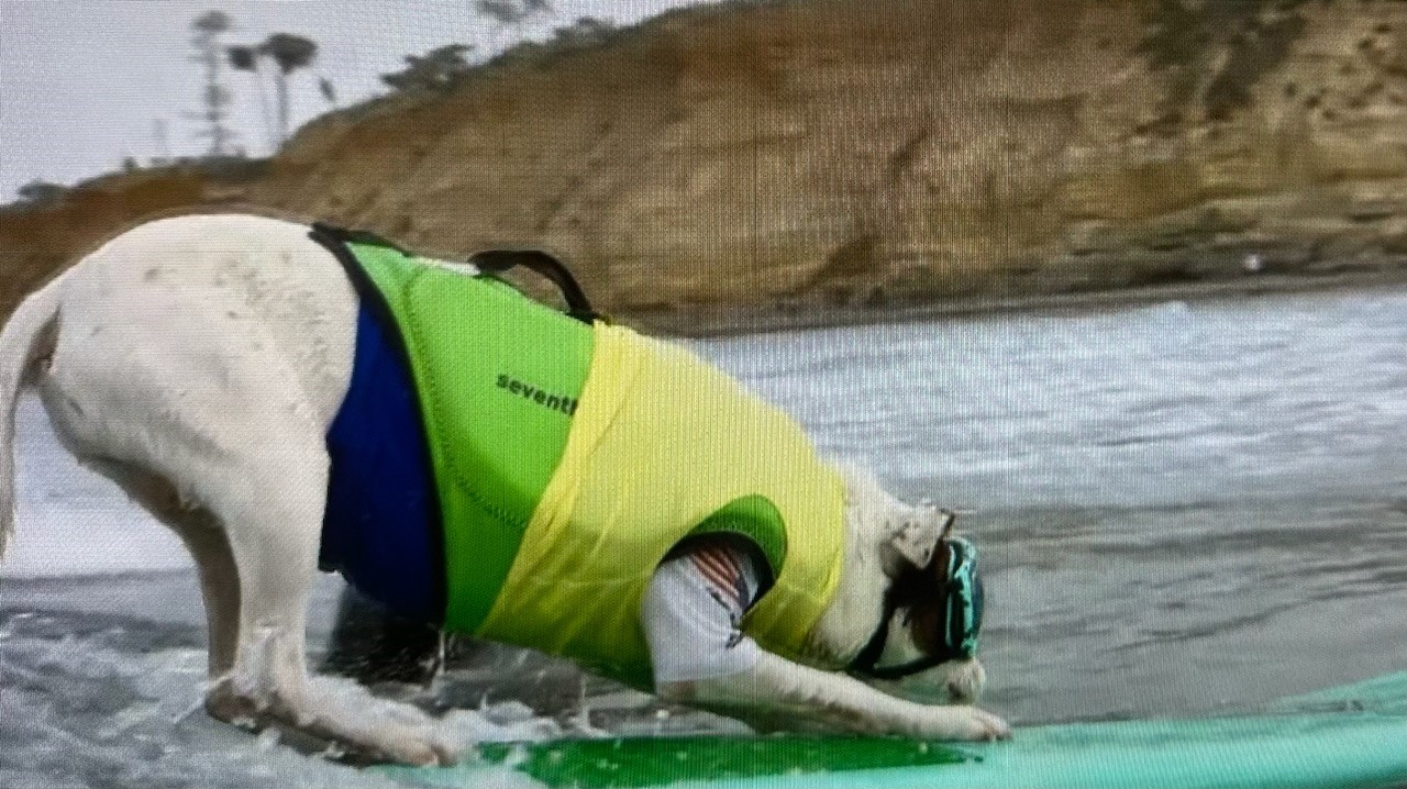 (Screenshots from the upcoming “Jay Jay” episode of Lucky Dog, produced by Hearst Media Production Group, featuring Helen Woodward Animal Center’s Surf Dog Surf-A-Thon.)