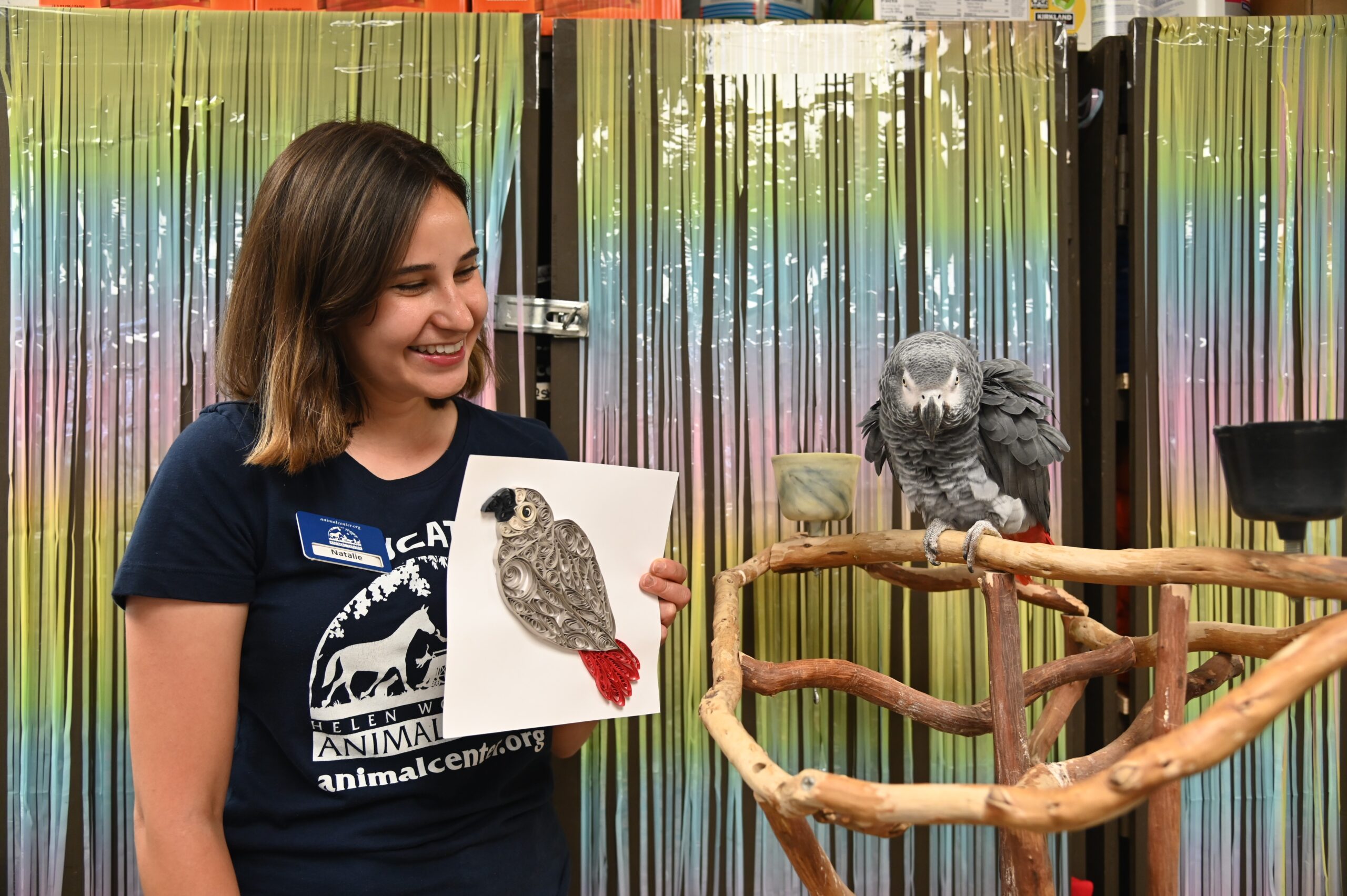 The first session on June 25th, will have entrants paper quilling Tasha, an African Grey Parrot. Tasha’s a smart and mischievous 32-year-old parrot who’s been with Helen Woodward Animal Center since 2007.