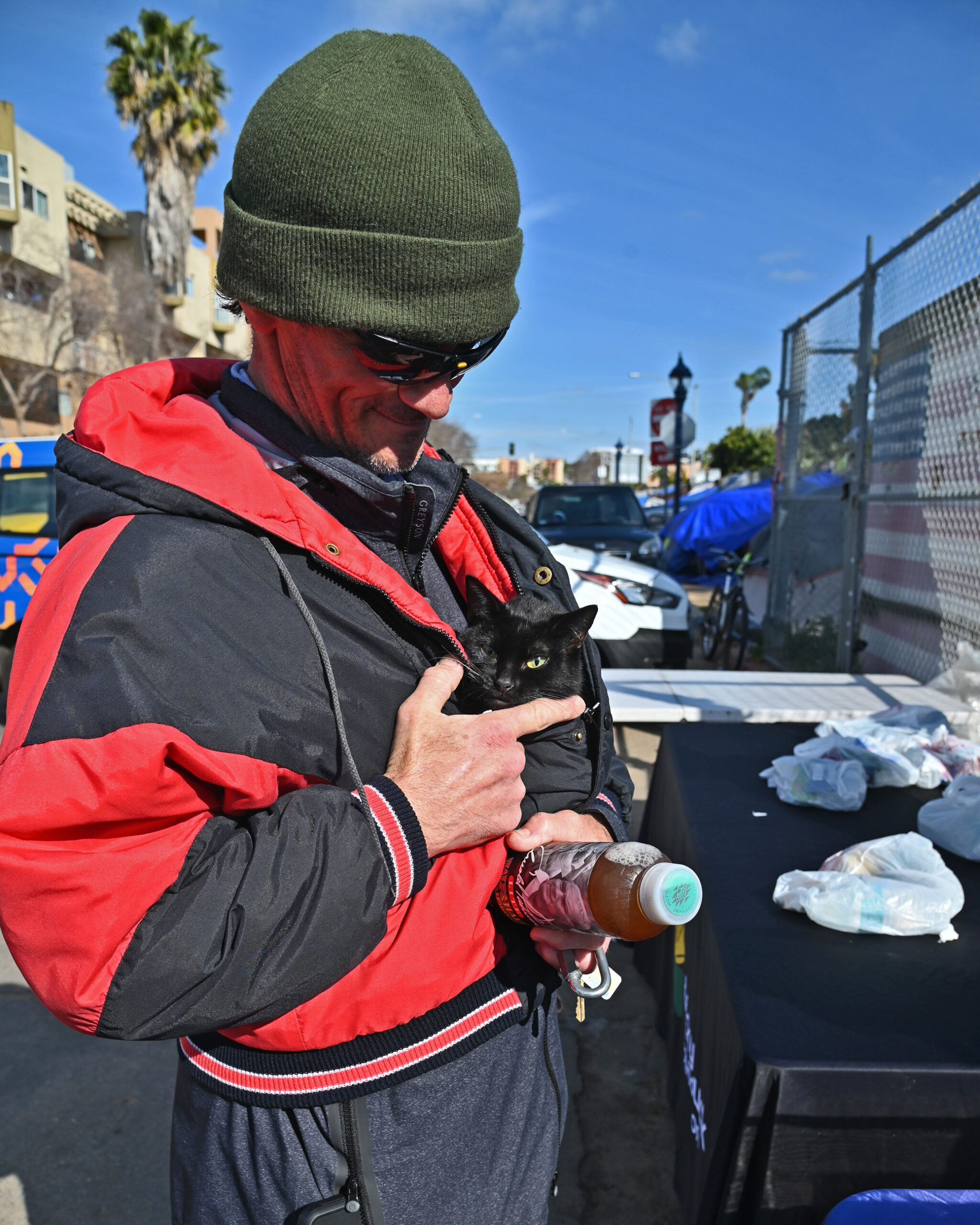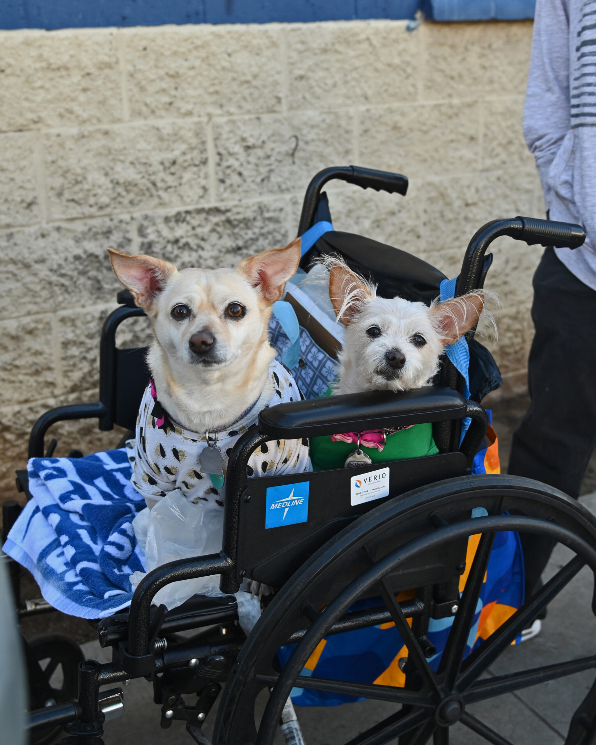 With the knowledge that one-in-four individuals experiencing homelessness have a pet, Helen Woodward Animal Center launched Pets Without Walls.  The program began eight years ago determined to join efforts with other local humanitarian organizations to assist unhoused families and help keep their furry companions fed and healthy.  On a weekly basis Pets Without Walls will visit local shelters headed by Alpha Project, Father Joe’s, Interfaith, PACE, Meals on Wheels and PATH in San Diego, to provide health checks, spay/neuter surgeries, microchipping, preventative medical care, important vaccinations, flea and tick medication, and pet food (through an extension of the AniMeals program).