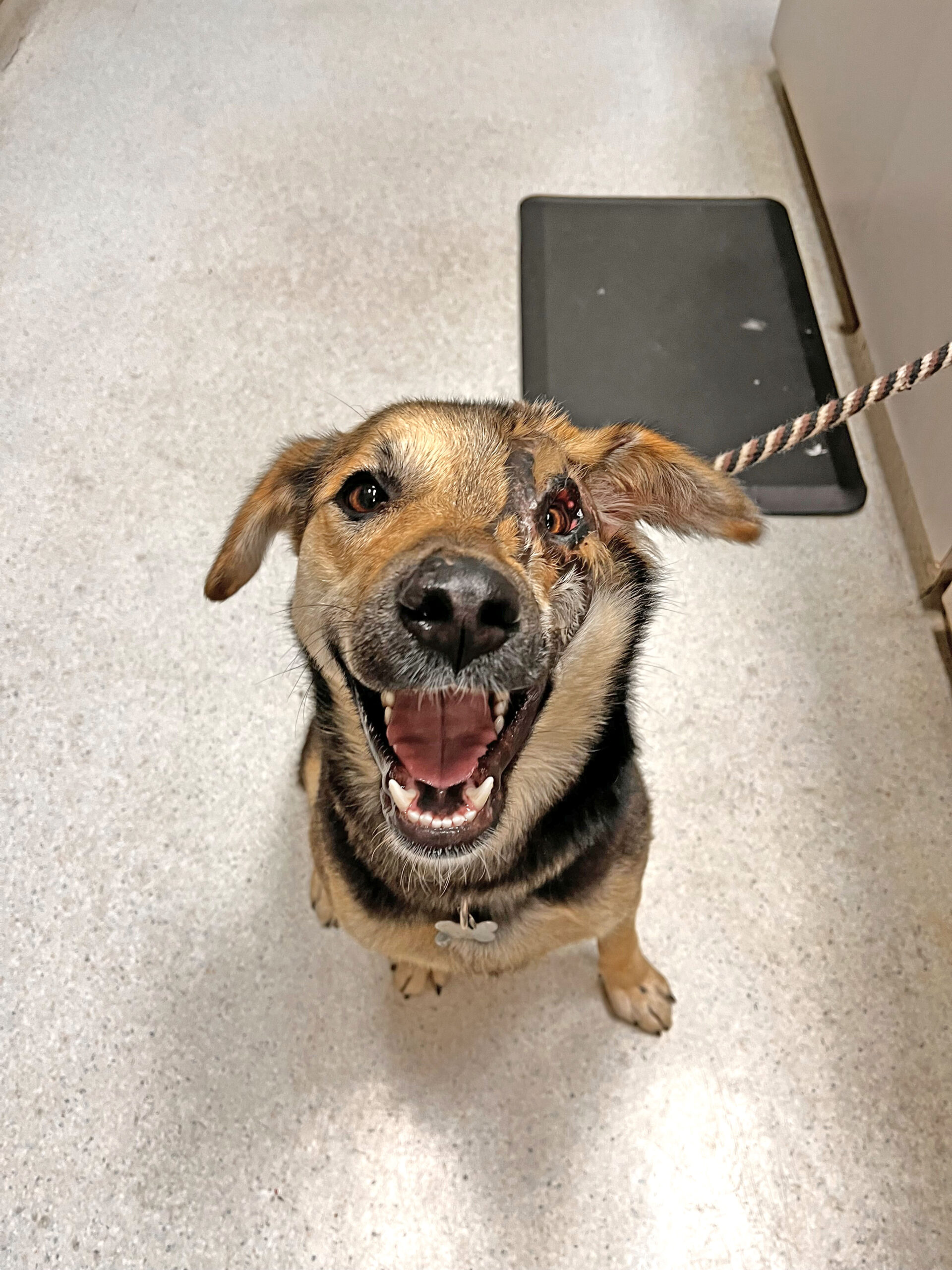 Rancho Santa Fe, Calif. (Apr. 4, 2023) – Thanks to the support of the local media, many animal-lovers have been following the story of Omid. The fourteen-month female shepherd-blend who was disfigured by abuse in the streets of Iran, spent nearly a year finding her way to Helen Woodward Animal Center, thanks to the loving care of two women living worlds apart. Today marks the next phase of Omid’s recovery due to a miraculous eye procedure aimed at creating an eyelid to replace the one she lost. Helen Woodward Animal Center is happy to announce that Omid is out of an incredibly successful surgery and is recovering at the Center.