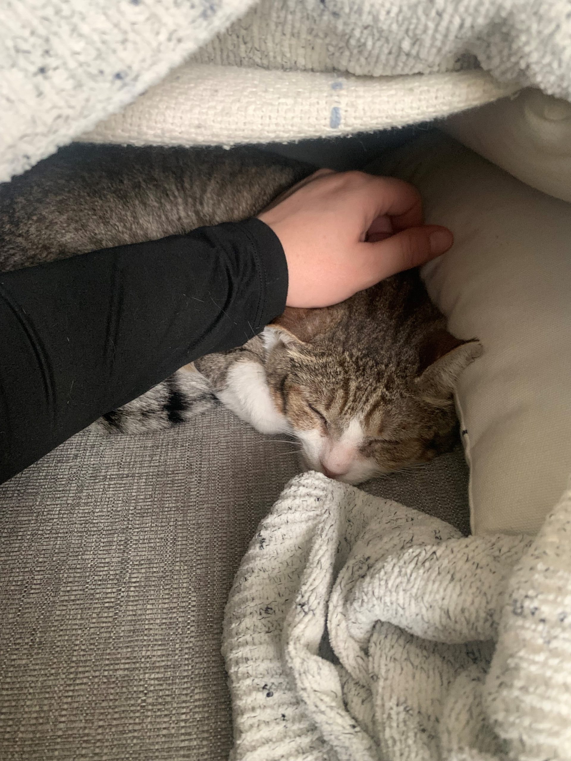After months of sitting in the Solarium watching younger and feistier kittens get adopted, Armand got a break. The Center’s Client Services Supervisor, Tahnee Bolster, had been drawn to the little guy since he first arrived. She saw him continue to be passed up by people and knew he deserved a loving home. So she opened up hers. In early June, Bolster and her husband took Armand home and were treated to an incredible surprise. Armand revealed he had a wonderfully loving personality.